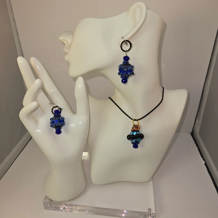 Blue beaded bell necklace set